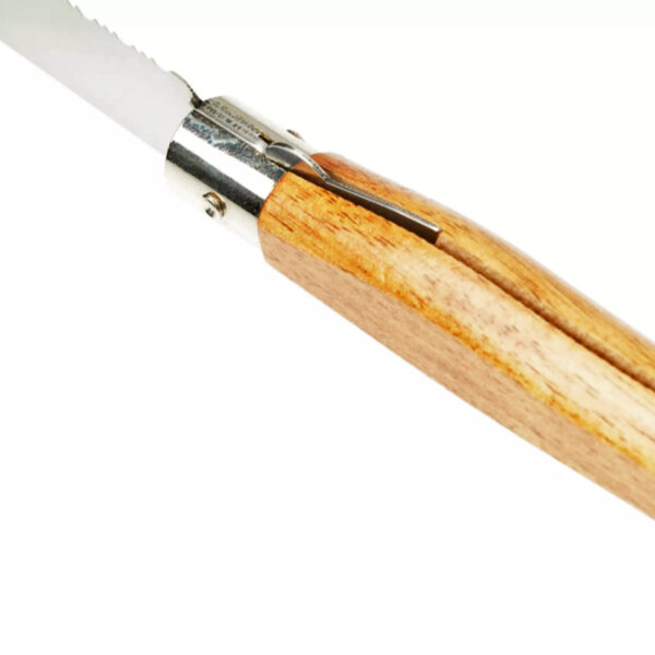 Ножът MAM Hunter Plus pocket knife е голям джобен нож със здраво, частично назъбено острие тип клипс-пойнт. Това го прави идеален за разрязване на дивеч, но също така е чудесен и за ежедневни задачи по рязане. Както при всички ножове MAM, острието се отваря с прорез за нокътя. Дръжката на Hunter е малко по-дебела в средата и в края, така че се усеща чудесно в ръката. Дръжката на този нож е изработена от букова дървесина. Буковата дървесина е естествен продукт, което прави всеки нож уникален. Сребристата алуминиева втулка държи острието и дръжката заедно. Този нож има острие тип клипс-пойнт и автентичен Liner Lock. Тази ключалка е оформена от извито парче неръждаема стомана. Това парче стомана е красиво вплетено в дръжката. Liner Lock има семпла извивка, която го прави много лесен за работа.