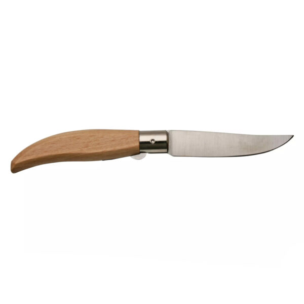 Ножът MAM Iberica pocket knife with blade lock е удобно джобно ножче със заострено острие клипс-пойнт. Ножът е кръстен на Иберийския полуостров. Това е големият полуостров в Южна Европа, който включва Португалия и Испания. Както при всички ножове MAM, острието се отваря с изрез за нокътя. Дръжката на Iberica е малко по-дебела в средата, което я прави приятна за хващане. Краят на дръжката се стеснява до извит връх, което придава на ножа елегантен вид. Дръжката на този нож е изработена от букова дървесина. Буковата дървесина е естествен продукт, което прави всеки нож уникален. Сребристата алуминиева втулка държи острието и дръжката заедно. Този нож има острие клипс-пойнт и автентична заключваща система Liner Lock. Тази заключваща система е оформена от извито парче неръждаема стомана. Това парче стомана е красиво вплетено в дръжката. Заключващата система Liner Lock има семпла извивка, която я прави много лесна за работа.