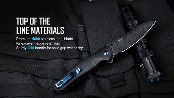 Ножът Oknife Drever е първият от серията на Olight. Първокласен, здрав сгъваем нож за ежедневно носене. Той разполага с 3.49-инчово острие тип sheepsfoot с пълноразмерен чойл от неръждаема стомана N690. Острието е закалено на 60-61HRC. Чирените на ръкохватката са от G10. Практичната форма на острието, с пълно плоско скосяване и отлична твърдост, обещава надеждност, отличен ряз и дълго запазване на острота при ежедневно ползване. Плътната дръжка е ергономична и перфектно текстурирана за удобно при ползване и здраво захващане. От дясната и страна е разположен дълбок стоманен клипс за носене тип даун. В дръжката има здрав стоманен лайнер лок oт стомана 3CR13. Отварянето е с помощта на флипер и двустранен пин. Система с лагери с ниско триене, позволява на потребителите лесно отваряне и заключване на острието. Лек и универсален, Drever е добре обмислен и практичен инструмент за рязане, който винаги да имате със себе си. Отговаря на изискванията за акредитация на BSCI и ISO 14000 и на стандартите за безопасност на храните FDA. В комплект с калъфче за съхранение, кърпичка за почистване и юбилейна EDC монета. Всеки нож е с гравиран индивидуален сериен номер и гаранция за качество.
