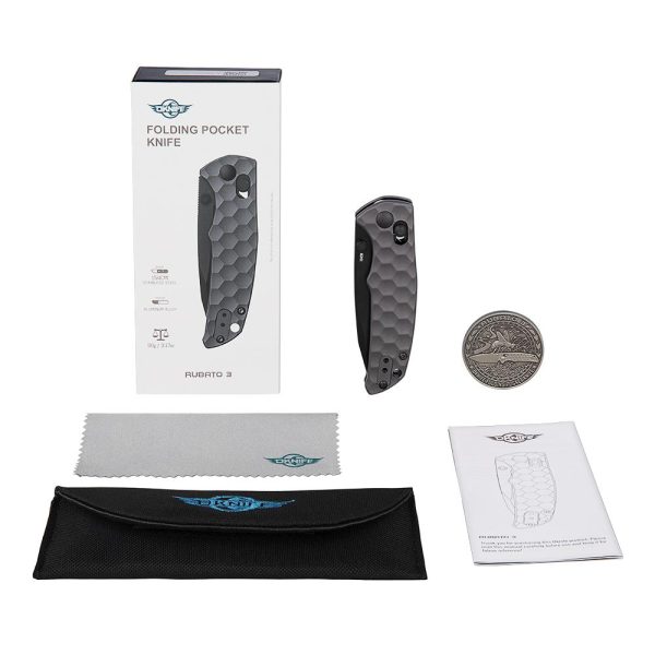 Ножът Oknife Rubato 3 e сгъваем EDC нож. Изработен от 154CM неръждаема стомана с черно титаниево PVD покритие, острието се отличава с твърдост 58 HRC. Rubato 3 разполага с алуминиева ръкохватка с форма на пчелна пита с висока устойчивост на износване и издръжливост, както и оптимален захват. Стабилно и гладко заключване с помощта на „релсовата“ ключалка. Благодарение на сачмени лагери, ножът може да се управлява двустранно с бързо и плавно отваряне, осигурявайки много по-безопасно използване. С щипка за джоб за дълбоко носене, която може да се монтира от всяка страна.