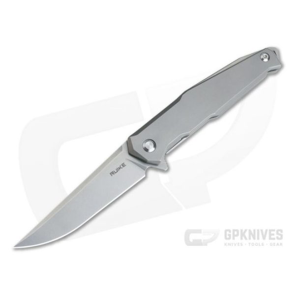 Сгъваемият нож Нож Ruike M108-TZ е подобрената версия на популярния P108 със същия страхотен дизайн, но с по-добри материали. Острието е изработено от 154 СМ неръждаема стомана, което се стеснява до фина точка на пробиване, осигурявайки солиден баланс между пробиване и рязане, движи сe плавно върху шарнира със сачмен лагер и се разгръща бързо и плавно Frame Lock заключване. Ръкохватката направена от здрави масивни титаниеви плочи с матово сиво покритие за изтънчен и елегантен вид. Обратният дистанционер е открит в края на ръкохватката с фрезован отвор за закрепване на паракорд.