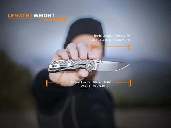 Ножът Ruike M671-TZ е с острие с дебелина 3.5 мм изработено от неръждаема стомана 154CM закалена в диапазона 58-60 HRC, което гарантира лесно и бързо заточване и по-дълготраен ряз. Ръкохватката е изработена от TC4 (титан). Отваря се с front flipper или thumb stud, много лесно и гладко само с една ръка, затварянето също става с една ръка. Ruike M671-TZ е добре балансиран с клипс за дълбоко носене и е перфектният избор за ежедневно ползване.