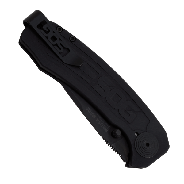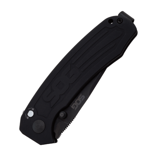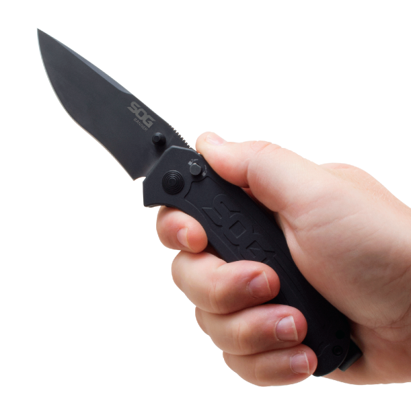 На базата на превъзходната стомана CPM S35VN, произведените в САЩ ножове SOG предлагат подобрена здравина, по-дълго запазване на острота, по-висока устойчивост на износване и отчупване, като в същото време се запазва лекотата на заточване. SOG BANNER е оборудван с автоматичен мрханизъм за изваждане на острието и черно покритие Cerakote. Въпреки големината от 89 мм, той е сравнително лек 130 гр и тънък. С едно натискане на бутона, ножът се отваря бързо и се заключва със сигурно щракване на ключалката. Перфектен избор за всекидневно носене.