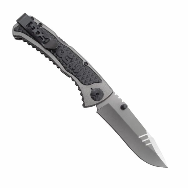 За тези, които търсят нещо малко по-здраво ножът SideSwipe Grey TiNi с дръжка материал Алуминий. с заключващият механизъм Backlockи стоманеното острие от 7Cr15 с твърдост HRC 55-57 се отличава с висока якост и устойчивост на износване. Ножът е със сменяема щипка за колан за ляво или дясно носене