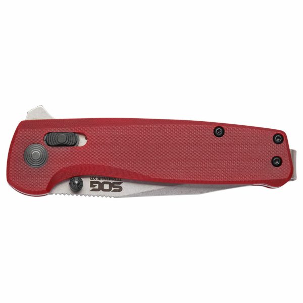 Ножът SOG Terminus XR G10 Crimson е идеалният размер за ежедневно носене. SOG Terminus XR G10 Crimson с дръжка материал G10 и заключващият механизъм XR Lock. Стоманеното острие материял D2 се отличава с висока якост и износоустойчивост. Ножът е със сменяема скоба за колан за ляво или дясно носене. Три различни метода за отваряне: thumb stud, XR Lock, and kick.