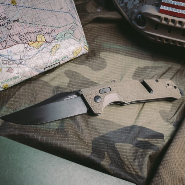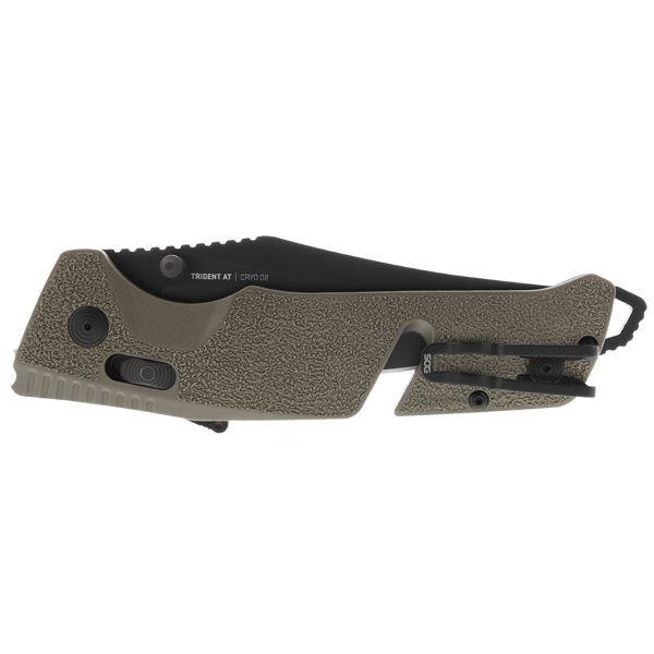 Тактическият нож SOG Trident AT FDE е идеалният размер за ежедневно носене с много възможности в един фолдър. В дръжката е интегрирана резачка (перфектна за рязане на шнур, предпазни колани и др.), шип за чупене на стъкло при екстремни ситуации. Всичко това, комбинирано със стабилно, острие и твърда анодизирана алуминиева дръжка показва, че е подходящ за различни ситуации.