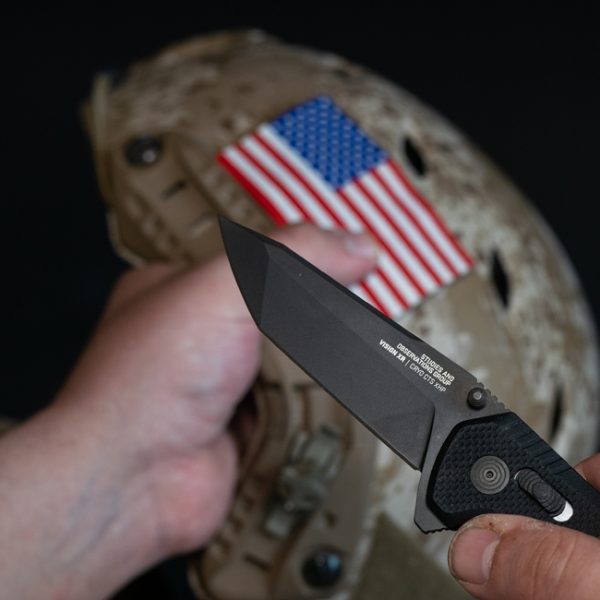Създаден за военни и правоохранителни органи, SOG Vision XR Black е специално изработен сгъваем нож с острие от криогенно закалена стомана CTS XHP с вид острие Tanto. Ръкохватката GRN с лайнери от неръждаема стомана осигурява стабилно усещане и баланс. XR Lock не само осигурява безпроблемна работа при отваряне и затваряне с една ръка, но е и една от най сигурните заключващи системи. Ножът е със реверсивен клипс за ляво или дясно носене.