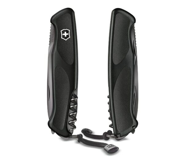 Ножът Victorinox Ranger Grip 55 Onyx Black е страхотно издание на известния RangerGrip. Характерното за Victorinox RangerGrip 55 е меката, черна гума на дръжката. Благодарение на тези противоплъзгащи се части ножът се усеща солидно в ръката. Този нож няма да се изплъзне лесно от ръцете ви. Дори и при мокри обстоятелства. Колекция Victorinox Onyx Black в сравнение със своите предшественици ножовете от колекцията Onyx са подобрени с части с черно покритие и полиспектрално покритие на инструментите. Това полиспектрално покритие има невероятен блясък и изглежда, че променя цвета си в зависимост от светлината, на която държите ножа.