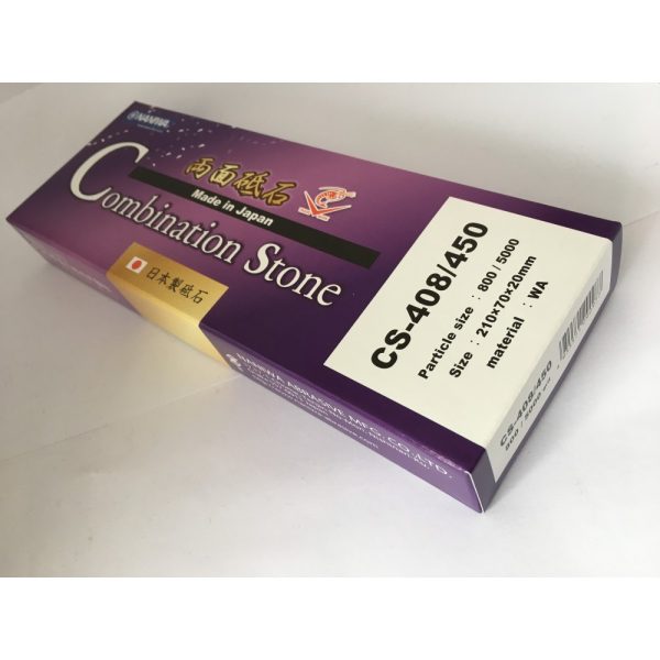 Камъкът за заточване NANIWA Combination Stone Grit 800/5000 е двустранен, има груба страна с размер на зърното 800(фино заточване) и фина страна с размер на зърното 5000 (ще полира и заточи перфектно). Комбинираните камъни се произвеждат във Виетнам, производството е строго контролирано от специалисти от Япония, които гарантират, че нищо не се губи по отношение на качеството. Благодарение на дебелия шлифовъчен слой, тези камъни за заточване издържат много години. За оптимален резултат от заточване, потопете Multi Stones във вода за няколко минути преди употреба, така че да са напълно напоени преди употреба.