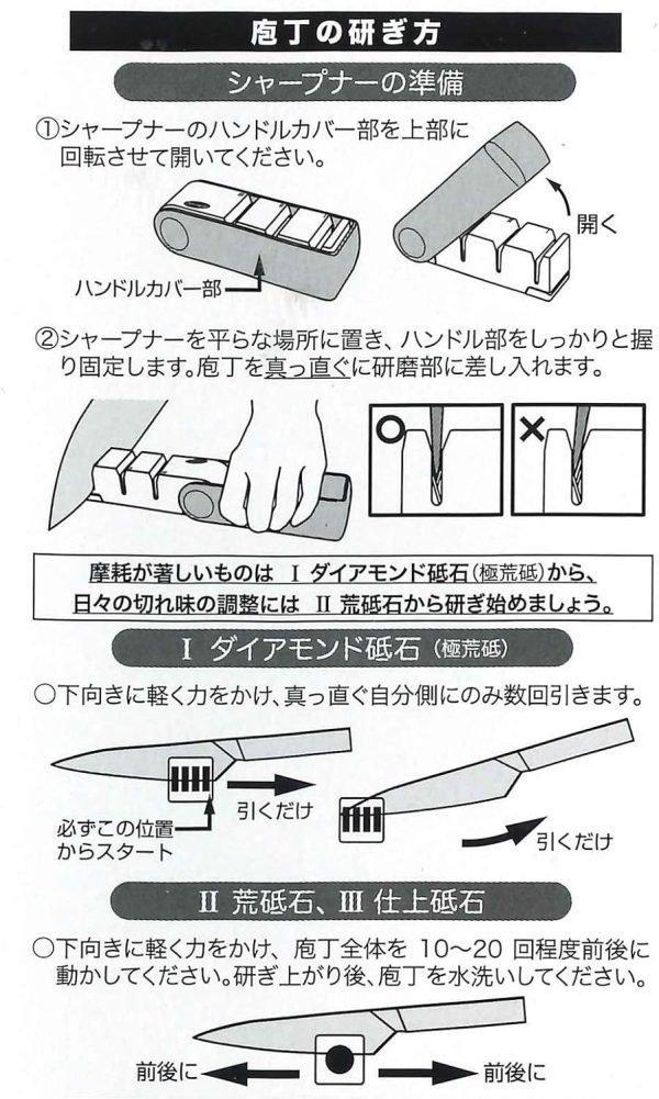 Комбинираното Точило за ножове Tojiro керамични ролки и диамант е тристепенно, предназначено за всички видове ножове, с изключение на тези с едностранно затоване и серетирани. Благодарение на водата процесът на заточване е по-бърз, а фабрично зададените отвори улесняват заточването на ножа под правилния ъгъл. Препоръчваме ежеседмична подръжка с по 10тина минавания на III стъпка. По този начин поддържате ножа изключително остър, без да се налага презаточване.