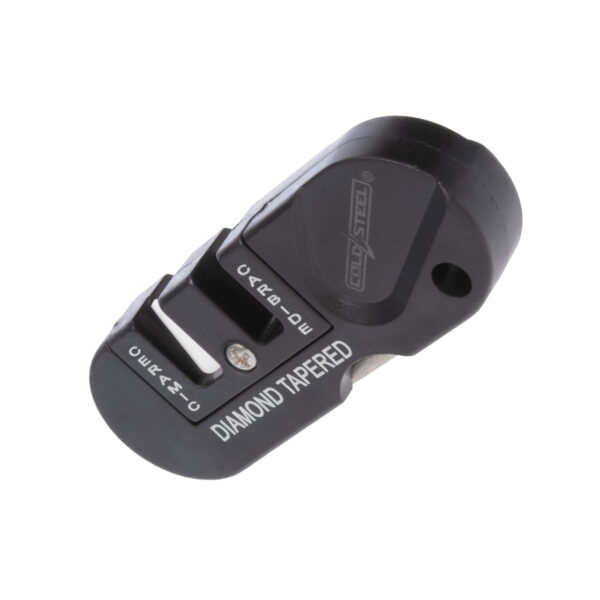 Точилото THREE IN ONE KNIFE SHARPENER има два предварително наточени камъка за заточване. Единият камък е керамичен, а другият е карбиден. Карбидното острие може да ви осигури бързо остър ръб, а керамичното острие може да ви осигури по-фин, остър като бръснач ръб. Освен това има сгъваема конусна пръчка с диамантено покритие за заточване на зъбци или малки кукички за риба. Острилката за ножове „три в едно“ е лека и включва отвор за ремък за лесно носене.