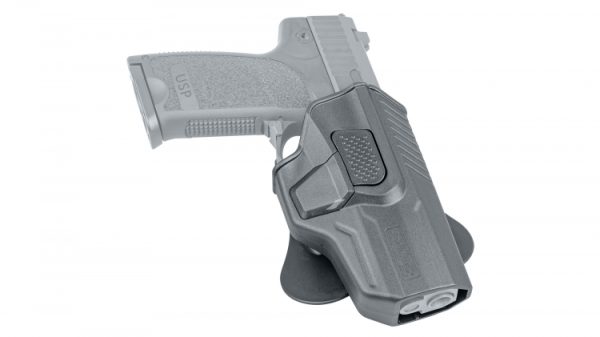 Кобур Umarex за Heckler & Koch е изработен от устойчив на удари полимер. Бутонът за освобождаване с пружина е в интуитивно положение, а приставката за колана може да се регулира, 360° за всеки ъгъл на теглене, по височина и да се съобрази с ширината на колана.