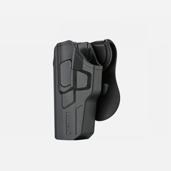 Кобур за лява ръка за GLOCK 19/23/33/45 Cytac CY-G19L е изработен от удароустойчив хай-тек полимер (Съхранение: -40℃ to 200℃). Кобура е снабден със заключващ механизъм level 1 с възможност за бързо вадене. При връщане на оръжието в кобура, то автоматично се заключва в него и няма опастност от неволно изпадане, изгубване или отнемане. Крепежът, към колана и тялото е гумиран от вътрешната страна за по-добър комфорт при носене. Ъгъла на носене на оръжието може да се регулира на 360 градуса, с помоща на ключе, което е в комплект. Като опции, могат да бъдат закупени допълнително крепеж към колан, крепеж към MOLLE система, платформа за носене на бедрото.