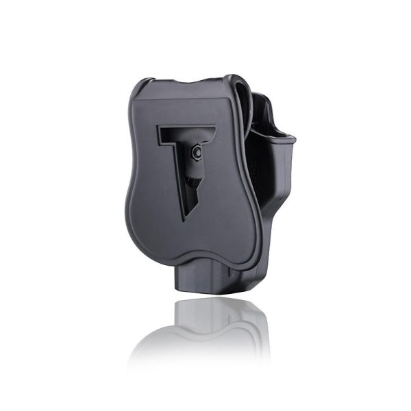 Изработен от удароустойчив хай-тек полимер (Съхранение: -40℃ to 200℃). Кобура е снабден със заключващ механизъм level 1 с възможност за бързо вадене. При връщане на оръжието в кобура, то автоматично се заключва в него и няма опастност от неволно изпадане, изгубване или отнемане. Крепежът, към колана и тялото е гумиран от вътрешната страна за по-добър комфорт при носене. Ъгъла на носене на оръжието може да се регулира на 360 градуса, с помоща на ключе, което е в комплект. Като опции, могат да бъдат закупени допълнително крепеж към колан, крепеж към MOLLE система, платформа за носене на бедрото, презрамки за рамо.
