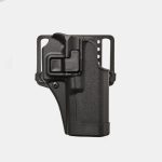Тактическият кобур Blackhawk Serpa CQС за пистолети H&K е Американски тактически кобур от висококачествен полимер, варианти за всички модели на H&K P30, P-2000, USP, USP Compact, както за дясна, така и за лява ръка, изключително здрав и удобен. С уникален дизайн, с който забравяте за старите модели със закопчалка, натоварващи и забавящи процеса на изваждане на оръжието. Патентованата заключваща система „Серпа Спортстер” блокира спусковата скоба на оръжието при прибирането му в кобура и го задържа стабилно до повторно изваждане. Това става с нормално движение на ръката и показалеца на стрелящата ръка. Показалецът на стрелящата ръка отключва механизма, натискайки специален бутон. Всички кобури от тази серия са в комплект с платформа за колан и допълнителен закрепващ към колана елемент, известен като „лопатка”. Черен цвят. При поръчка се уточнява модела пистолет.