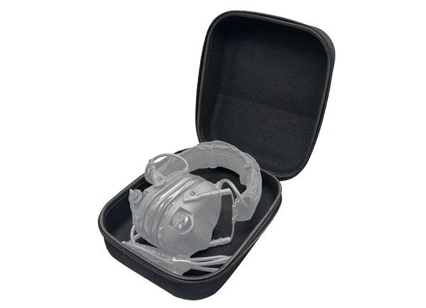 Твърда кутия за пасивни и активни антифони, както и за обикновени слушалки. Кутията спокойно побира сгънати антифони и слушалки с твърда лента за глава. Изработена е от найлон и се затваря с двустранен цип. Снабдена с удобна дръжка за транспортиране, тази чанта не позволява на вашите слушалки или антифони да бъдат наранени при изпускане или от външните условия благодарение на микрофибърната подплата, която абсорбира ударите и предпазва съдаржанието на кутията.