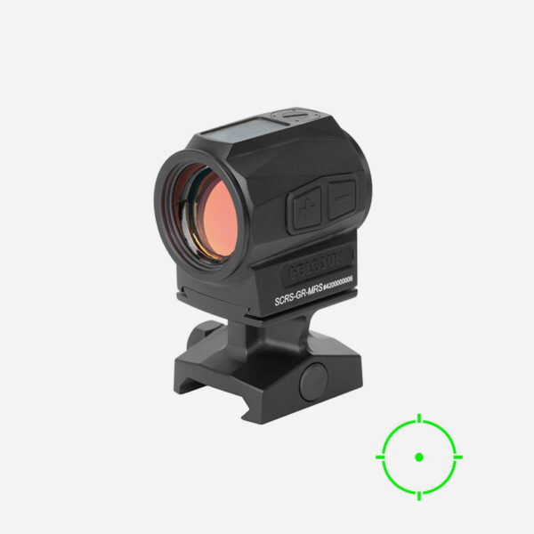 Бързомерът Holosun SCRS-MRS GR 2/65MOA Solar е усъвършенстван технологично SCS на Holosun, създавайки изцяло нов, ултракомпактен 20-милиметров бързомер, предназначен за карабини. Бързомерът разполага със светлинни сензори и усъвършенстван режим за автоматични настройки на интензивността на скалата и режим за ръчно управление на интензивността на точката. Бързомер SCRS-GR е изработен от алуминий 7075 и включва висок монтаж (1,63“), който използва доказания отпечатък 509T на Holosun за съвместимост с монтажи RDS на трети страни. Предлага се със зелена мерна точка с размер 2 MOA и кръгла скала 65 МОА. SCRS-GR разполага с 12 настройки на интензивността на скалата, четири от които са съвместими с устройства за нощно виждане, и с живот на батерията до 50 000 часа. Технологията Solar Failsafe е едно от многото нововъведения, включени в оборудваните със слънчева енергия уреди Holosun. С технологията Solar Failsafe, ако батерията ви откаже, винаги имате резервен източник на захранване при наличие на естествена или изкуствена светлина. Solar Failsafe се активира в автоматичен режим, при който интензивността на скалата се регулира автоматично в зависимост от количеството светлина, което получава слънчевата клетка. При по-светли условия имате по-голяма яркост, а при по-слабо осветление интензивността намалява, за да съответства на всички условия на осветеност. При моделите, оборудвани със суперкондензатор, е възможно уреда да работи безкрайно дълго време в дневни и нощни условия, като се поддържа заряд чрез слънчевата система за безопасност, без да се използва батерия.