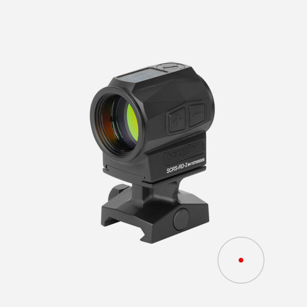 Бързомерът Holosun SCRS RD 2MOA Solar е усъвършенстван технологично SCS на Holosun, създавайки изцяло нов, ултракомпактен 20-милиметров бързомер, предназначен за карабини. Бързомерът разполага със светлинни сензори и усъвършенстван режим за автоматични настройки на интензивността на скалата и режим за ръчно управление на интензивността на точката. Бързомер SCRS-2 е изработен от алуминий 7075 и включва висок монтаж за Picatinny релса. Характеризира се със система от сменяеми скали в червен цвят. Този бързомер разполага с общо 12 настройки на интензивността на скалата, четири от които са съвместими с устройства за нощно виждане и до 50 000 часа живот на батерията. Технологията Solar Failsafe е едно от многото нововъведения, включени в този и редица други уреди Holosun. С технологията Solar Failsafe, ако батерията ви свърши, винаги имате резервен източник на захранване при наличие на естествена или изкуствена светлина. Solar Failsafe се активира в автоматичен режим, при който интензивността на скалата се регулира автоматично в зависимост от количеството светлина, което получава слънчевата клетка. При по-светли условия имате по-голяма яркост, а при по-слабо осветление съответно интензивността намалява, за да съответства на всички условия на осветеност. При моделите, оборудвани със суперкондензатор, е възможно мерния прибор да работи безкрайно дълго време в дневни и нощни условия, като се поддържа заряд чрез слънчевата система за безопасност, без да се използва батерия.