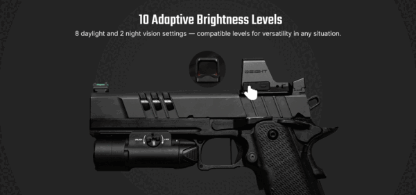 Бързомерецът Osight C 32 MOA Circle + 3 MOA Dot е бързомерец с многомерна решетка, създаден да предложи отлична видимост и бързо прицелване, както при дневна, така и при слаба светлина. Оптичните стъкла са многослойно антирефлексно покрити, за да позволят максимален приток на светлина и чиста, контрастна картина. Големият прозорец (0.95″ × 0.75″) осигурява по-широка визия и по-бързо прихващане на подвижни цели, а изборът на мерник — 3 MOA червена точка, 32 MOA кръг или комбинация от двете — дава гъвкавост за прецизни или скоростни прицелвания. Osight C използва дизайн със странично поставена батерия (CR1632), което позволява бърза подмяна без сваляне на оптиката. Вграден сензор за движение активира прицела при минимално движение и го изключва автоматично след 3 минути бездействие, което удължава живота на батерията. Корпусът е изработен от 7075-T6 алуминий с Type III твърдо анодиране и е сертифициран с IPX6, гарантирайки устойчивост на условия на употреба и навън.