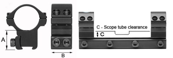 Монтажът Sportsmatch UK HTO42C е висок от две части. Диаметър на ринга 1“(25,4мм.). Елементите на ринга се закрепват един към друг с по четири винта, елементите на основата с два винта. Подходящ за лястовичата опашка 9.5-11.5мм и оптика с челна леща на оптиката до 56мм