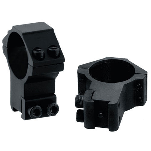 Алуминиеви монтажи на американската фирма Leapers. Подходящи за оптики с диаметър на тръбата 30мм и възможност за монтаж на 11мм релса (лястовича опашка). Четири-точково захващане на ринговете и дву-точково захващане за релсата. Със стопер.