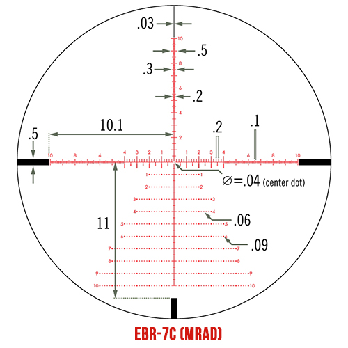 - Стъпка при корекция: .1 MRAD