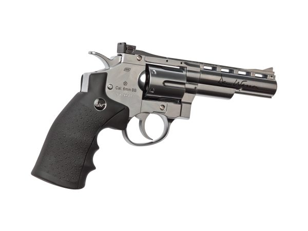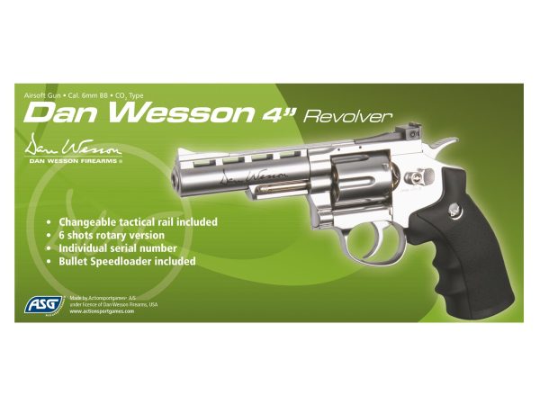 Най-късият от револверите Dan Wesson е тази версия с 4” цев. Това е красив сребърен револвер. Изцяло металната конструкция придава на револвера много солидно впечатление и веднага можете да усетите качеството. Капсулата с CO2 от 12 g се зарежда в ръкохватката и всеки от реалистичните 6 гилзи съдържа по един BB 6мм, който се изстрелва при повече от 130 m/s (420 pfs).