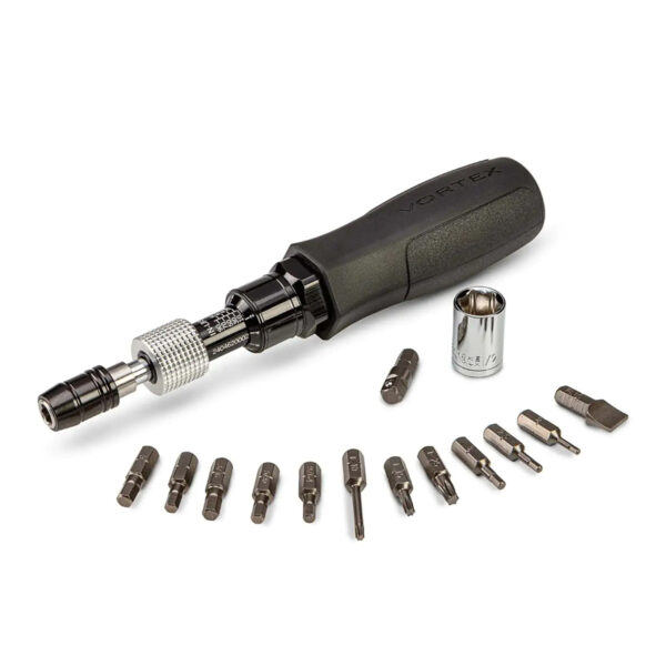 - Какво включва в комплекта: 1 x Pro Torque Wrench за монтаж на оптики VORTEX 1 x Транспортна кутия – за съхранение и безопасно пренасяне на инструмента Шестостенни битове (3/16″, 5/32″, 9/64″, 5mm, 4mm, 3mm, 2.5mm, 2mm) Торкс® битове (Разширен T-10, T-15, T-25) Бит за отвертка 10mm ширина 1/2″ глава Адаптер от 1/4″ шестостенен към 1/4″ квадратен глава