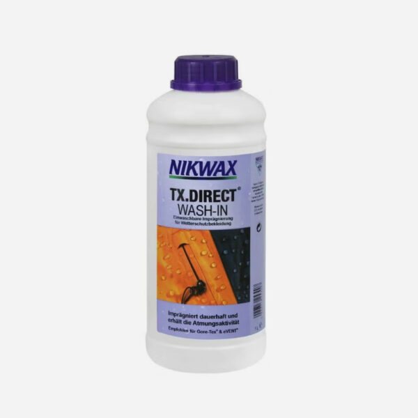 Nikwax TX.Direct® Wash-In е препарат за импрегниране на екипировка чрез пране (ръчно или машинно). Много лесно за използване, даващо перфектни резултати. С този препарат вие запазвате и подобрявате работата на вашата дреха, екипировка. Чрез него почиствате и правите екипировката водоустойчива и по – добре дишаща. Използвайте този продукт, вместо на конвенционалните почистващи препарати или прах за пране.