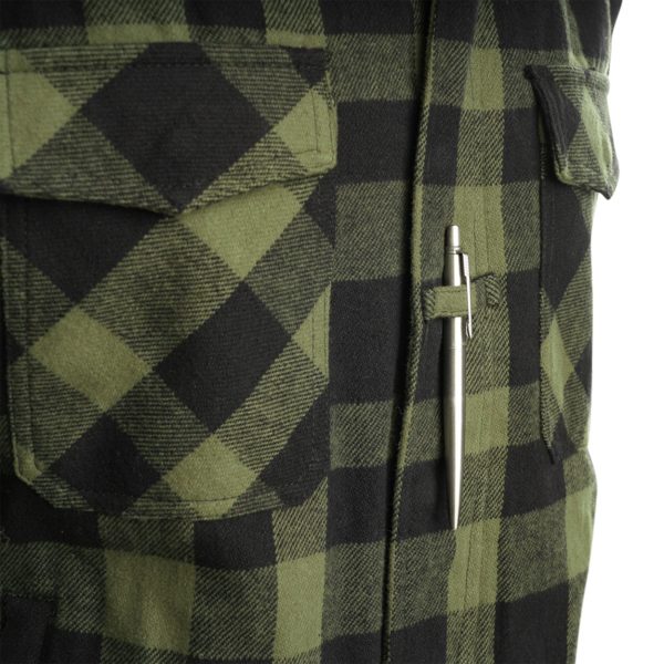 Якето Fostex Garments Lumberjack Sherpa green black е удобно и модерно яке, с топла подплата, перфектен за по-студените дни през пролетта/есента или за зимния сезон. Проектирано за ежедневна употреба и дейности на открито като трекинг, бушкрафт, но също така чудесено и като работно яке благодарение на подсилените рамене Cordura®. Материалът шерпа от вътрешната страна на якето е мек и предлага страхотен комфорт. Също така разполага с качествен YKK® цип и множество джобове за съхранение на вещи.