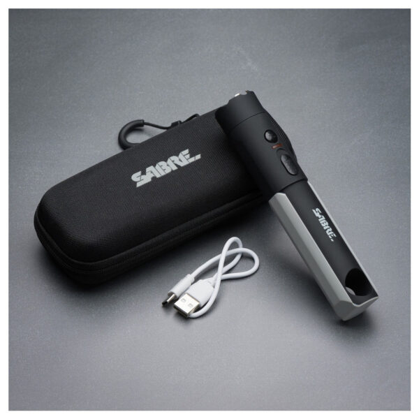 Дайте си сили с електрошокът Sabre 2 в 1 с LED фенерче. Със заряд от 1,75 uC, този електрошок Sabre е мощен, причинява „непоносима болка“ и ви дава сила с изключителна спираща сила, когато имате най-голяма нужда от нея. Яркото LED фенерче с 200 лумена може да осветява пътя ви на разстояние до 150 фута. Вграденото LED фенерче с 200 лумена не е просто обикновена светлина, то се предлага с три режима на светене – силен, нисък и светене – което го прави универсален инструмент за всяка среда. Независимо дали се движите по тъмна алея, разхождате кучето, намирате пътя си по време на прекъсване на тока или сигнализирате за помощ, това фенерче ви покрива. За максимално удобство този електрошоков пистолет включва твърд калъф за безопасно съхранение и лесно пренасяне. Този електрошоков пистолет се предлага с акумулаторна батерия и включва кабел за зареждане, което гарантира, че вашето устройство винаги е готово, когато имате нужда от него. Индикаторът за заряд на батерията ви информира за нивото на заряд на вашето устройство, така че никога да не бъдете хванати неподготвени. Чувствайте се уверени, като използвате вашия електрошоков пистолет със светлинния индикатор за захранване на батерията, който ви уведомява, когато е включен, и състоянието му на зареждане.