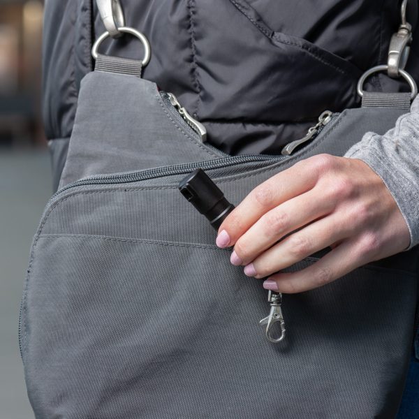 Лютив Спрей SABRE RED Pepper Gel with Flip Top with Key Ring BLACK e с халка за ключодържател и релефна дръжка за пръсти подобрява захващането. Дизайнът на капака предотвратява случайно натискане и е най-бързият за използване, докато сте под напрежение. Прикрепя се към ключодържател за лесен достъп. Спреят от пипер се разгръща в мощен поток и има дълъг обхват от 4м. Този лютив спрей съдържа боя за ултравиолетово маркиране, която помага на властите да идентифицират заподозрян, след като бъде напръскан. Иновативен предпазител с въртяща се горна част помага да предотвратите случайно изпускане в чантата или джоба ви.