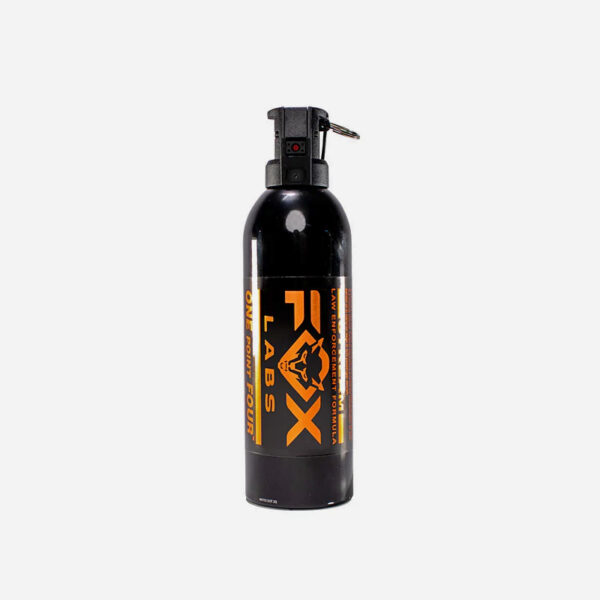 Спреят за самозащита Fox Labs One Point Four 470ml.- конус е изключително силен лютив спрей на маслена основа с незабавен ефект. Всички продукти от линията ONE POINT FOUR® започват с известната ни наследствена формула, в която се използват 5,3 милиона топлинни единици на Сковил (SHU) OC пипер – след това удвояваме съдържанието на пипер, което удвоява MC (основните капсаициноиди) до почти разтърсващи нива. Това е един от малкото истински полицейски спрейове с висока сила на пазара и оригиналната наследена формула, която се носи от полицията, служителите на затворите и военните на САЩ. Сега ONE POINT FOUR е увеличил топлината и това се превръща в най-търсения продукт от правоприлагащите органи в цялата страна. Това е лютив спрей на маслена основа (повечето лютиви спрейове са водни), което дава на спрея по-голямо разстояние и по-силен ефект при удар. Лютивият спрей ONE POINT FOUR включва и невидима UV маркираща боя за идентифициране на заподозрения.